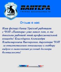 Группа Безопасности «Пантера» была основана более 30 лет назад, одним из основных видов деятельности была пультовая охрана с выездом Группы Быстрого Реагирования (ГБР).